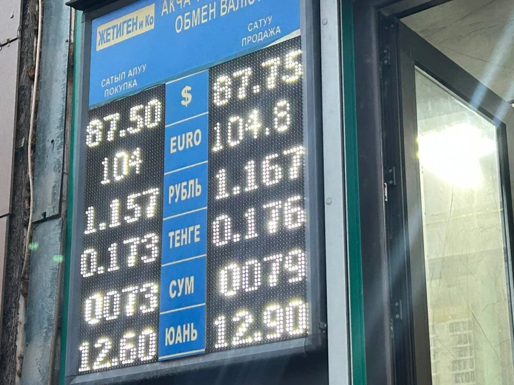Курс доллара остался прежним: покупка осуществляется по 87,5 сома, а продажа — по 87,75.