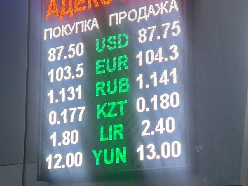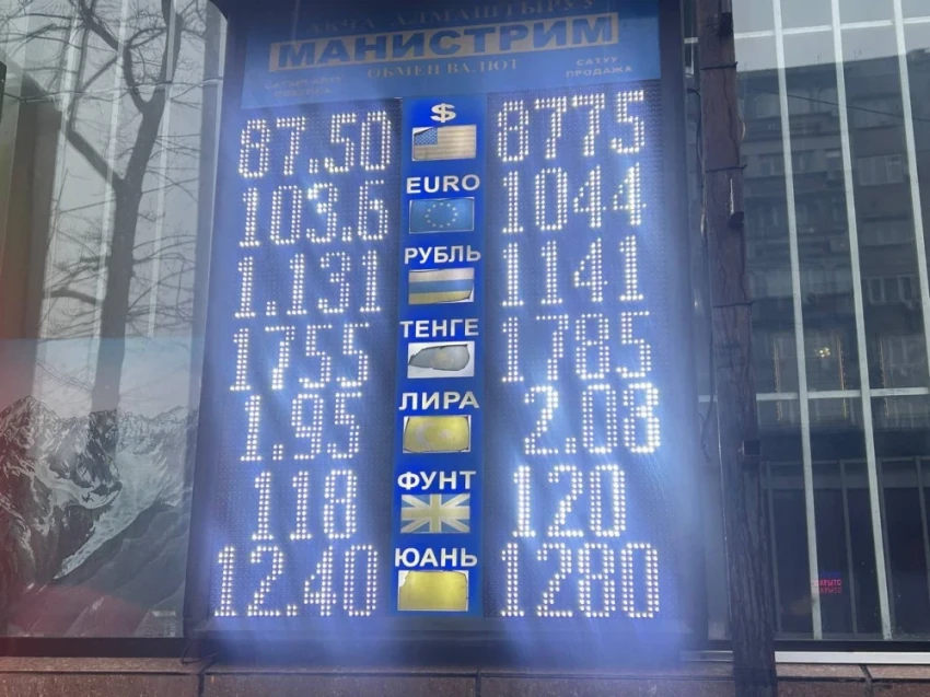 Что касается рубля, его курс остается стабильным: покупка 1,12-1,13 сома, а продажа 1,13-1,14 сома.