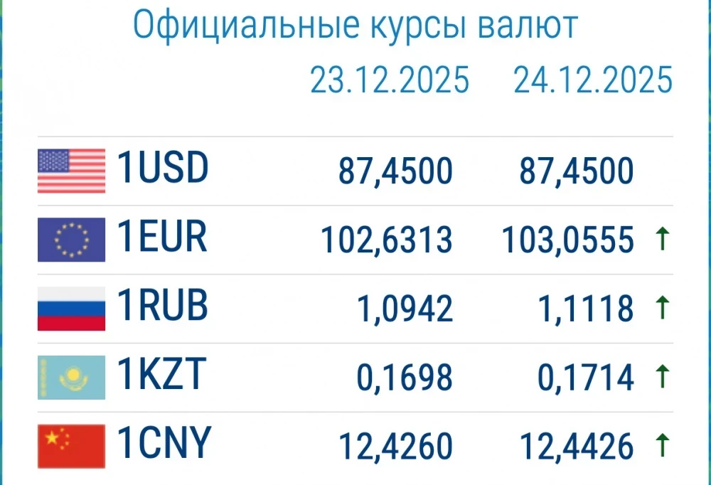 Доллар сохраняет свою позицию на уровне 87,45 сома, в то время как курсы других валют продолжают расти.