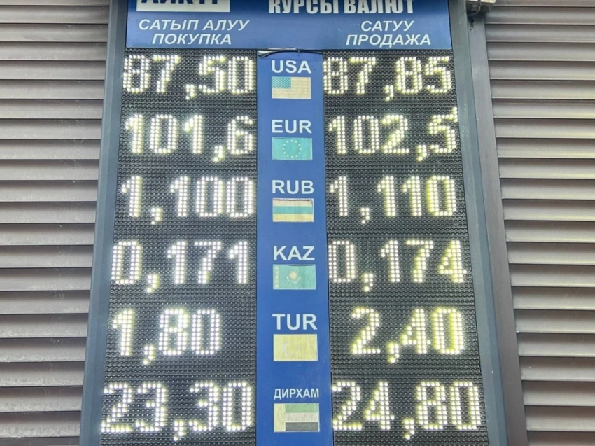 Доллар немного увеличился в цене, его покупают за 87,55 сома, а продают за 87,85.