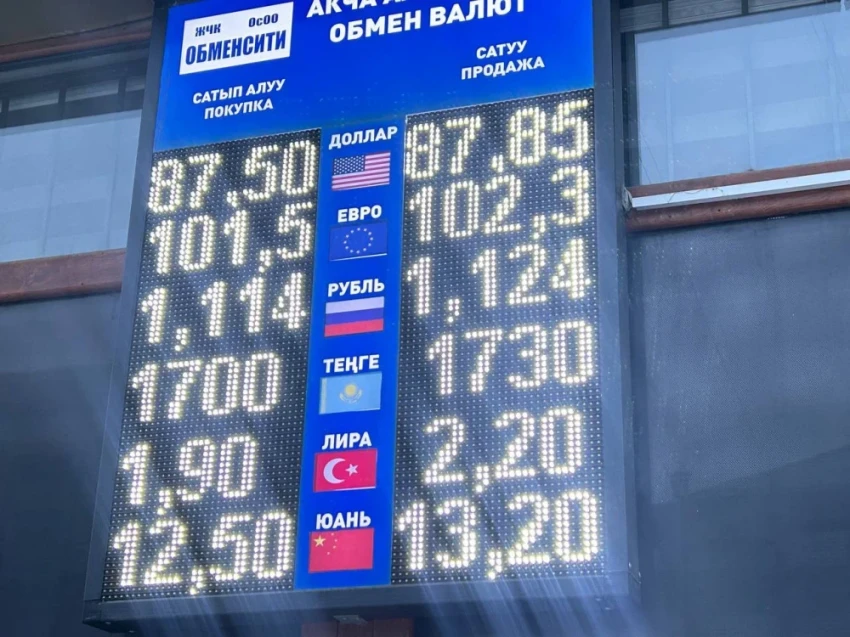 Евро, в свою очередь, немного подорожал. Его покупка осуществляется по цене 101,5-102 сома, а продажа — по 102,3-102,8.
