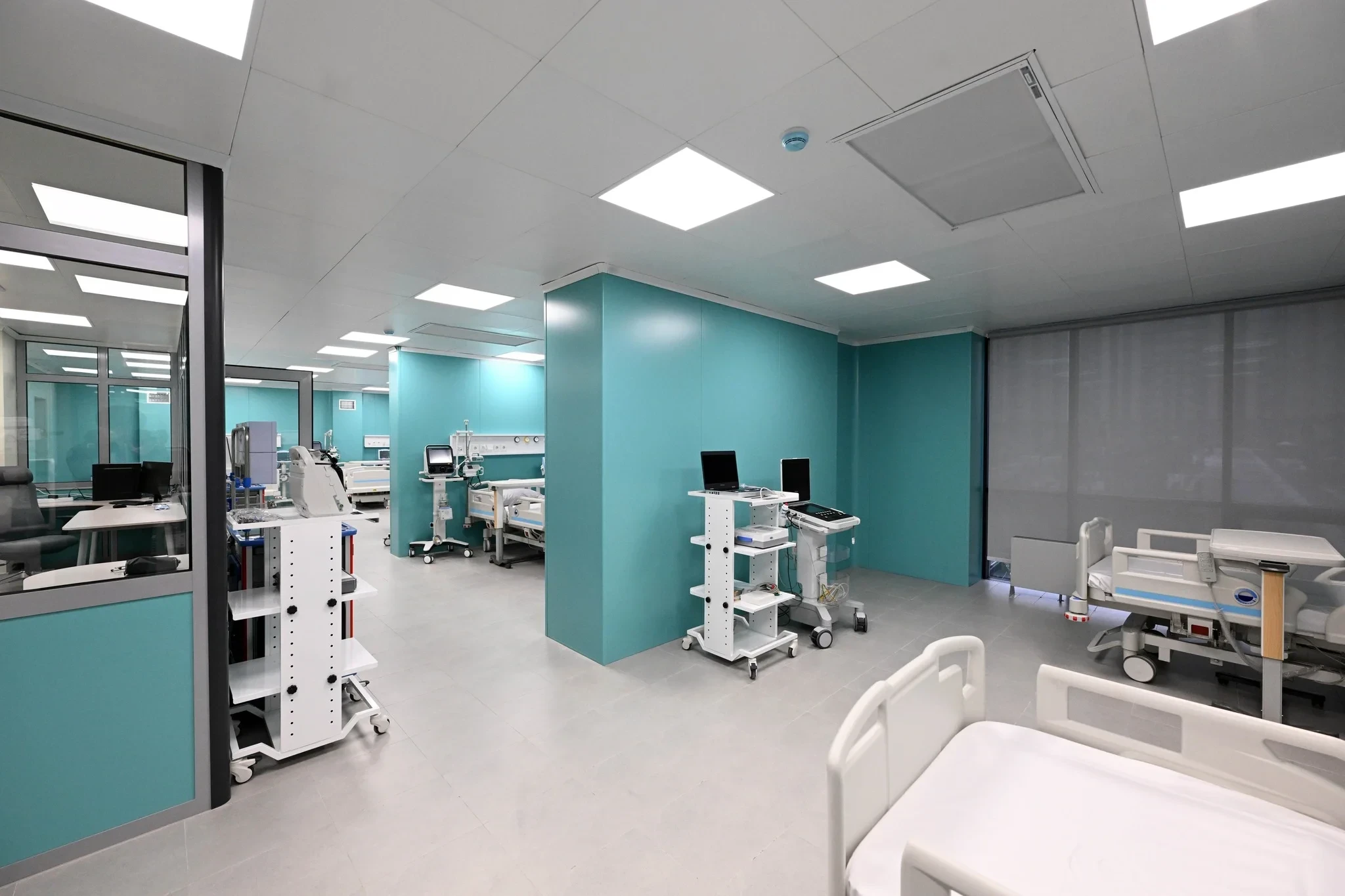 В завершение президент осмотрел кабинеты, оборудованные новейшими технологиями, включая магнитно-резонансные и компьютерные томографы, аппараты для ультразвуковой диагностики и эхокардиографии, а также палаты, конференц-зал, столовую и спортивный зал.