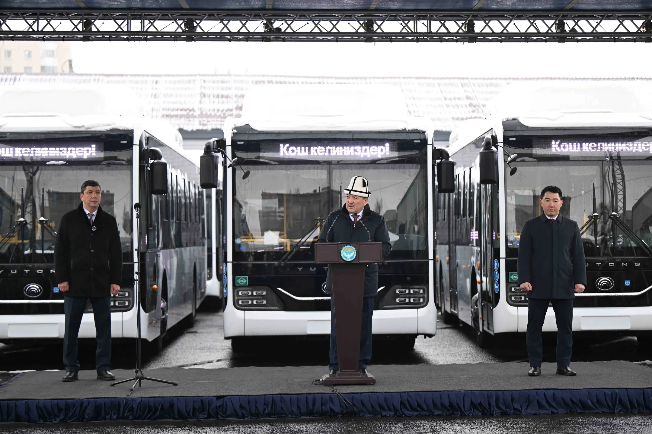 Сегодня, 12 февраля, в Бишкеке состоялась церемония передачи ключей от новых автобусов и специальной техники, в которой принял участие Адылбек Касымалиев, председатель кабинета министров и руководитель администрации президента Кыргызской Республики.