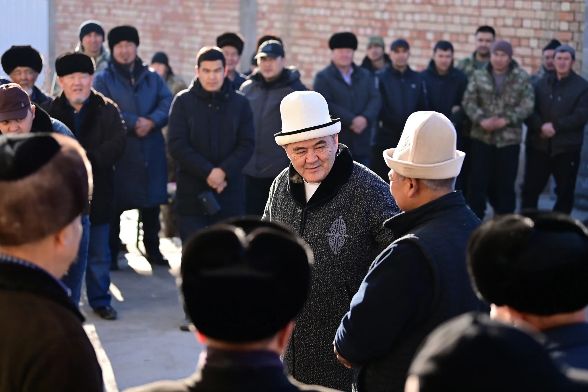 В Сузаке, в Джалал-Абадской области, председатель ГКНБ Камчыбек Ташиев передал ключи от нового дома местному жителю Турдубаю Кожоеву, который на протяжении 17 лет исполняет обязанности молдо в своем селе Барпы.