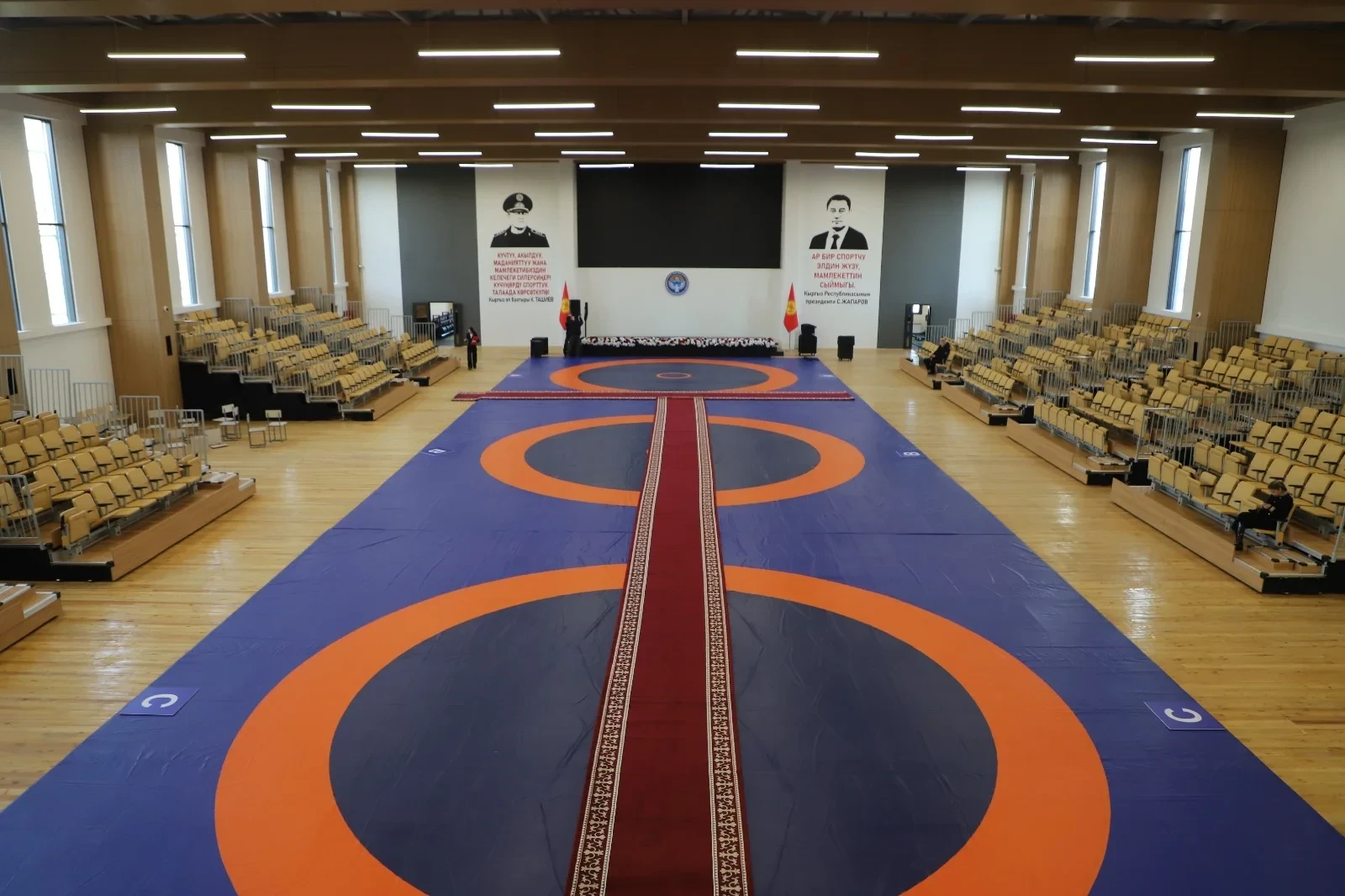 По данным пресс-службы ГКНБ, новый комплекс включает в себя зал для борьбы, зрительские трибуны, фудкорт, современные общежития, конференц-зал и дополнительные помещения для тренировок и совещаний.