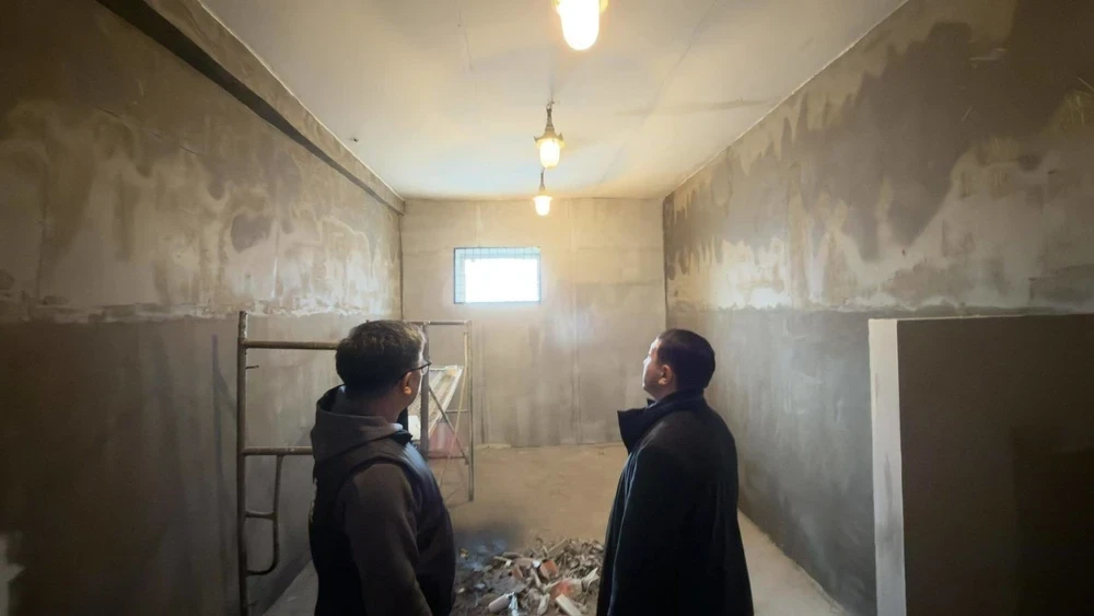 Работы продолжаются как в кинозале, так и в старом здании, где создаются специализированные локации для съемок и сценические пространства.