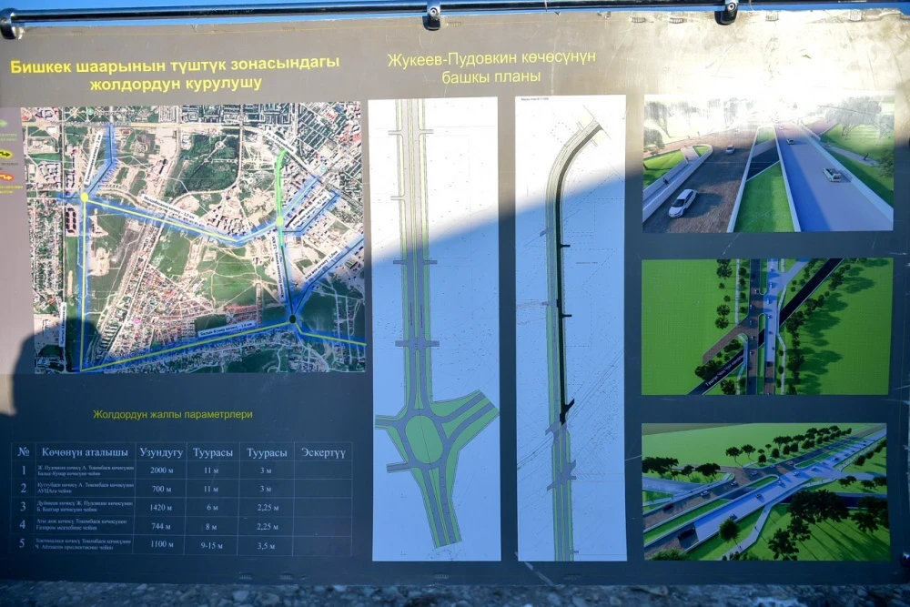 Чиновники, включая Айбека Джунушалиева, были проинформированы о ходе строительства участка улицы Жукеева-Пудовкина от А. Токомбаева до Иманалиева. В работах задействовано около 100 единиц специализированной техники.
