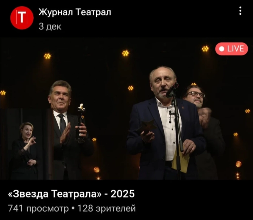 Премия "Звезда театрала" была основана в 2008 году и является единственной независимой наградой в России в области театрального искусства, получающей свои лауреатов через интернет-голосование зрителей по всему миру.