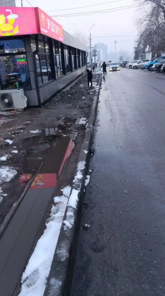"Состояние тротуара оставляет желать лучшего, его практически нет. Мы вынуждены передвигаться по дороге. Цех был перемещен, чтобы освободить место для тротуара, но до сих пор ничего не сделано. Мы настоятельно призываем акимиат и другие городские власти отреагировать и решить данную проблему", - заявляют местные жители.