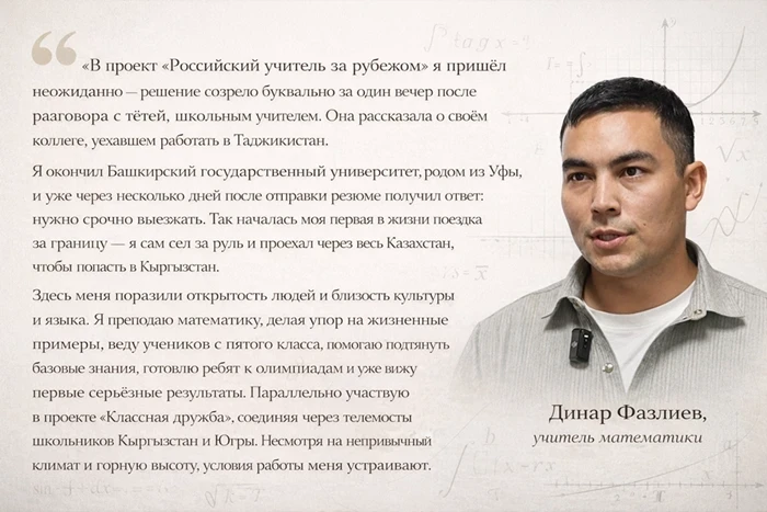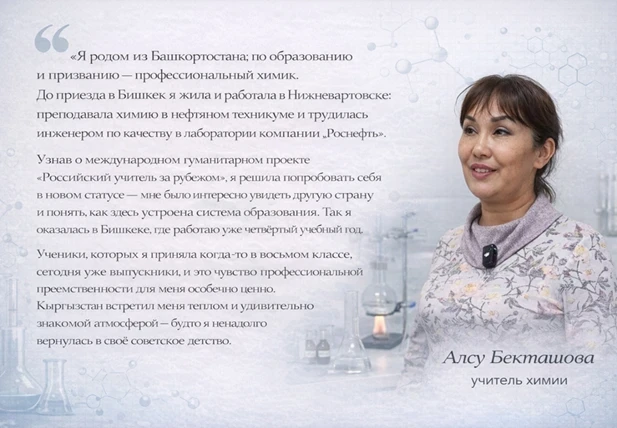 С конца 2024 года в Кыргызстан приехало около 60 молодых российских педагогов, которые начали преподавать математику, физику и литературу, а также проводить кружки по робототехнике и ораторскому мастерству. В сотрудничестве с кыргызскими учителями они внедряют новые подходы к обучению и обсуждают современные методики, что делает образовательный процесс более динамичным и актуальным.