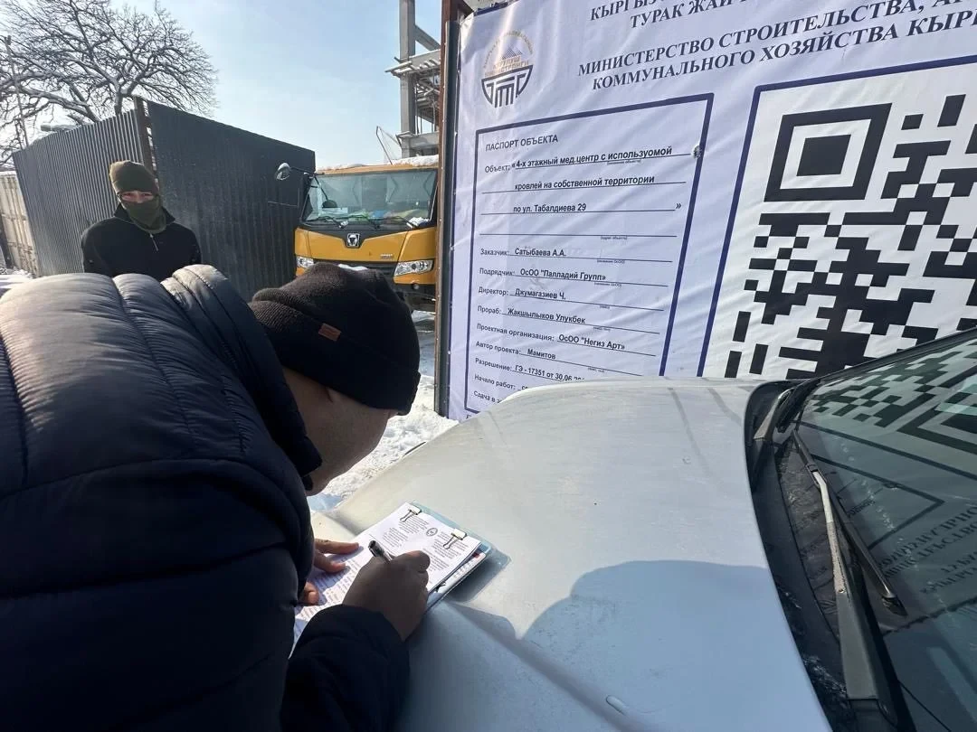 В ходе проверки было осмотрено строительство 4-этажного медицинского центра, расположенного по адресу: г. Бишкек, ул. Табалдиева, 29. Во время инспекции были зафиксированы серьезные нарушения, в том числе несоблюдение требований технических регламентов и ряда нормативно-правовых актов.